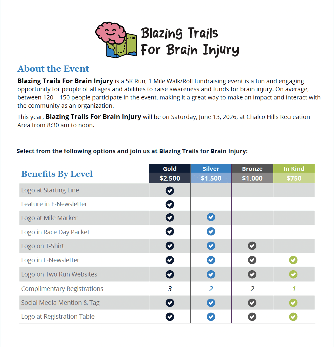 Set a personal or team goal and make a difference for the brain injury community in Nebraska!