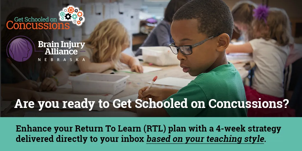 The Brain Injury Association of Nebraska is proud to partner with Get Schooled on Concussions, Nebraska Department of Education, Nebraska State Education Association, Nebraska Council of School Administrators, Nebraska School Activities Association, Nebraska ESU Coordinating Council, and the Nebraska Association of School Boards to provide this resource for free, for all educators in the state.